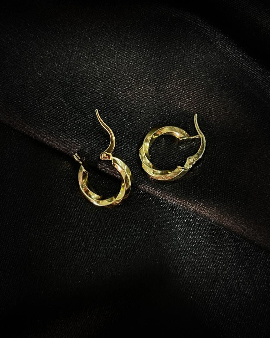 estas argollas presentan un diseño trenzado que simboliza la unión y la fuerza. El acabado entorchado en oro crea una superficie rica en texturas que captura la luz desde múltiples ángulos, ofreciendo un brillo mucho más vibrante que el de una argolla lisa tradicional.